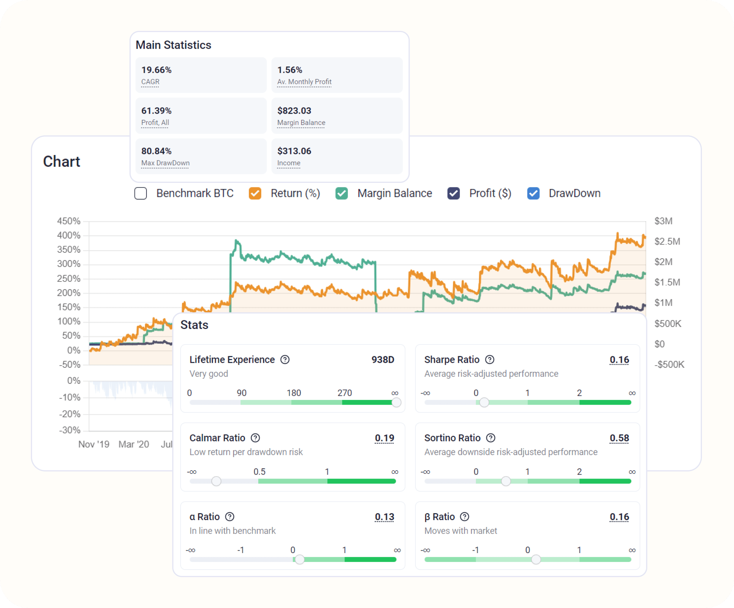 Access detailed metrics like daily profits, fees, win rates, drawdowns, and more, giving you the insight needed to identify strengths, address weaknesses, and continually improve.